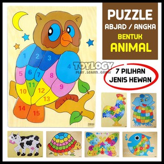 Mainan Edukasi Anak Wooden Puzzle Kayu Abjad Abc Angka Bentuk Hewan - Lihat Gambar Full