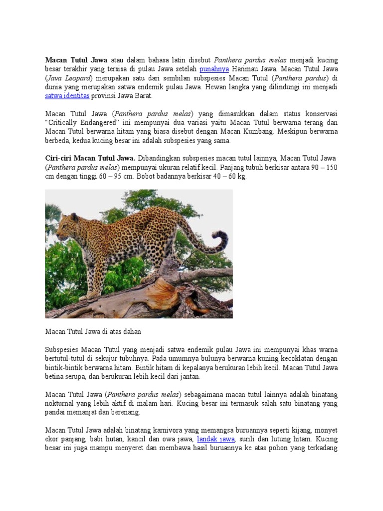 Flora Dan Fauna Nusantara Macan Tutul Jawa - Lihat Gambar Full